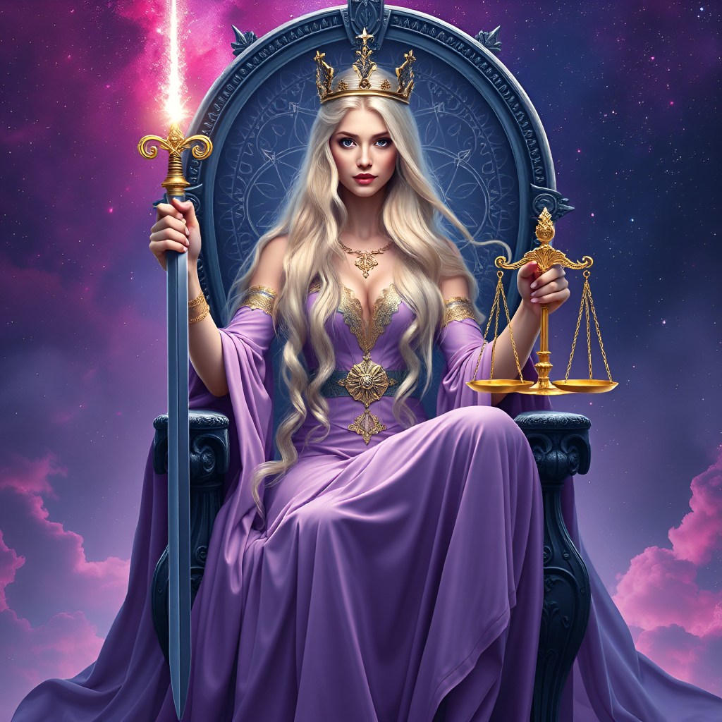 Justice is the archetype of fairness and equilibrium. Depicted as a figure holding a sword and scales, often seated on a throne, Justice symbolizes the pursuit of truth, the importance of balance, and the consequences of our actions. This card represents the law of karma, reminding us that every action has a reaction and that we must take responsibility for our choices.